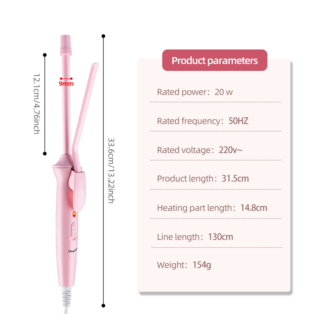 Mini ferro de ondulação de cabelo 9mm varinha de modelador pinças encaracoladas profissionais cerâmica ferramenta de estilo de salão elétrico pequeno ferro de friso