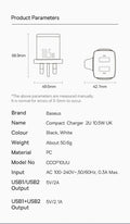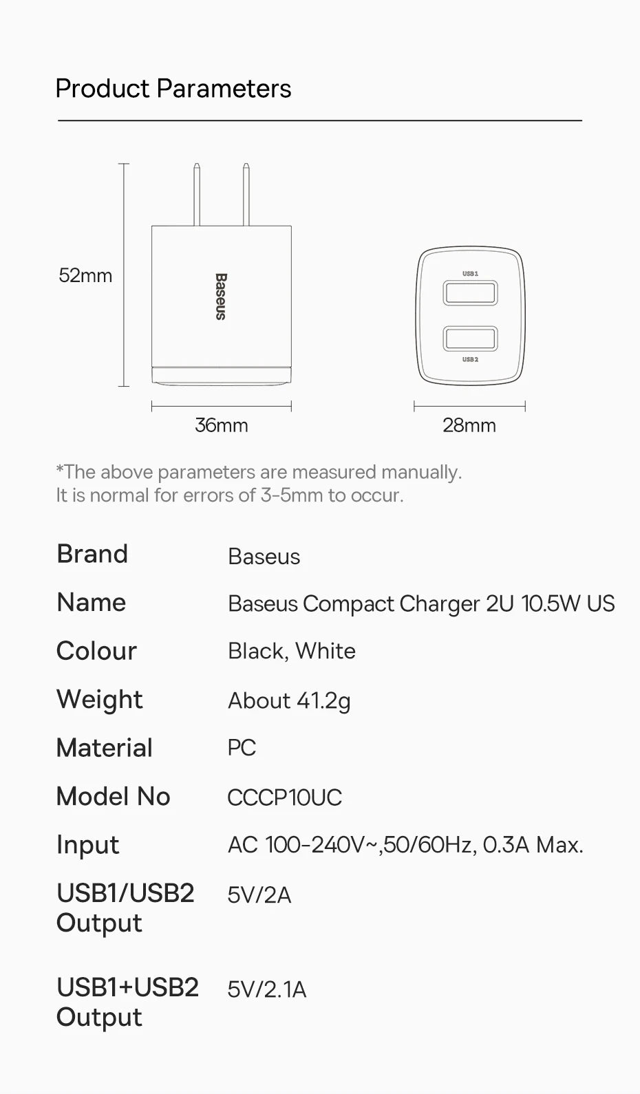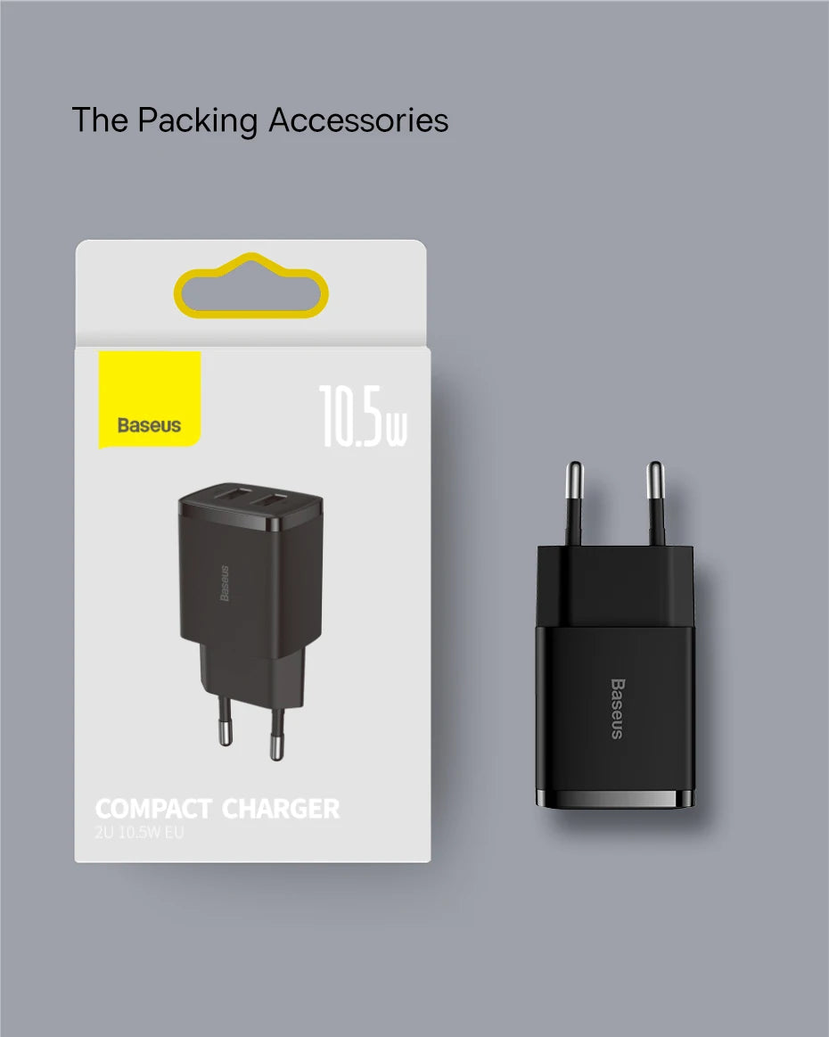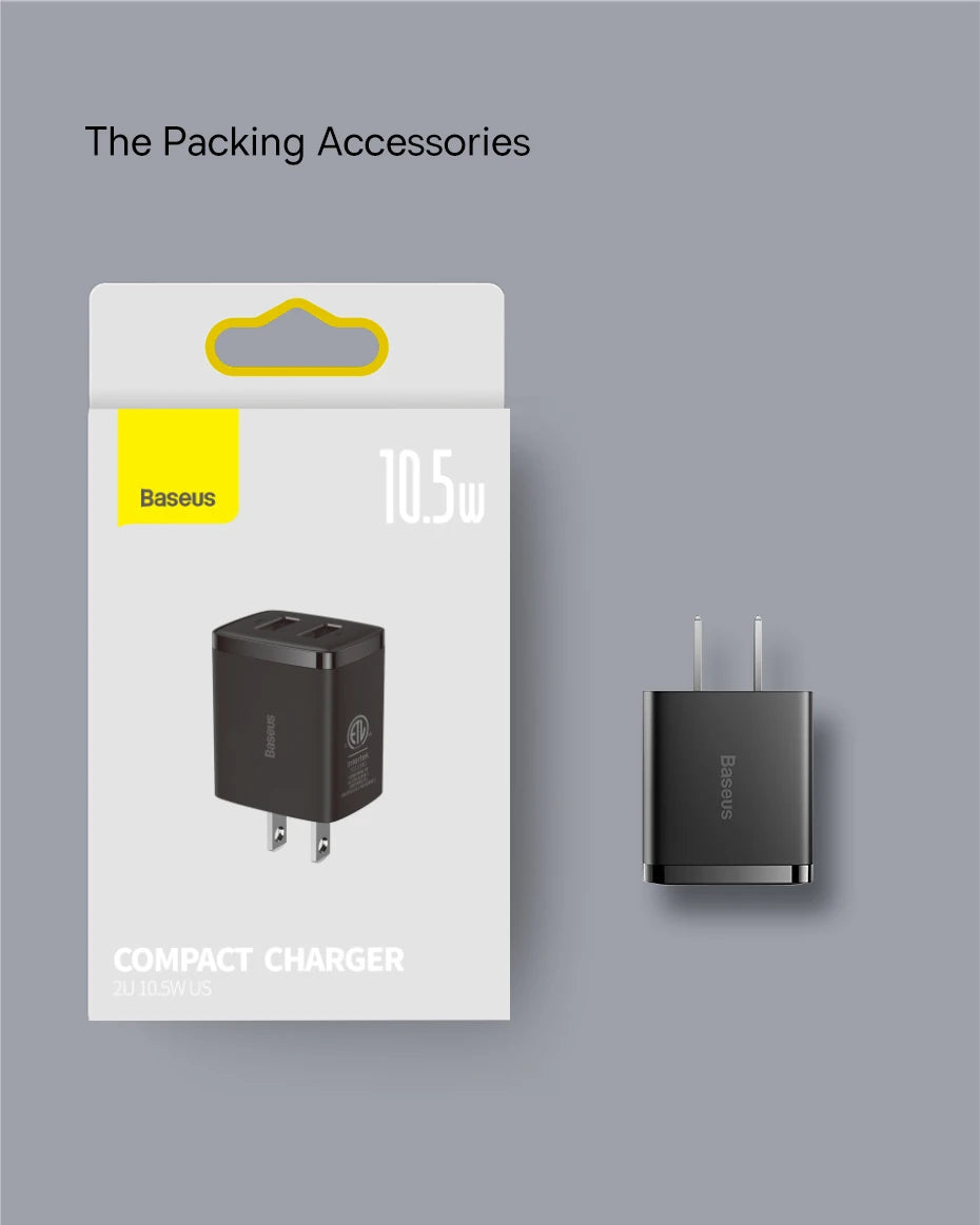 Baseus 10.5W Carregador de Viagem USB Mini Adaptador de Parede Portátil Carregador de Porta Dupla de Carregamento de Telefone Para iPhone Huawei Xiaomi