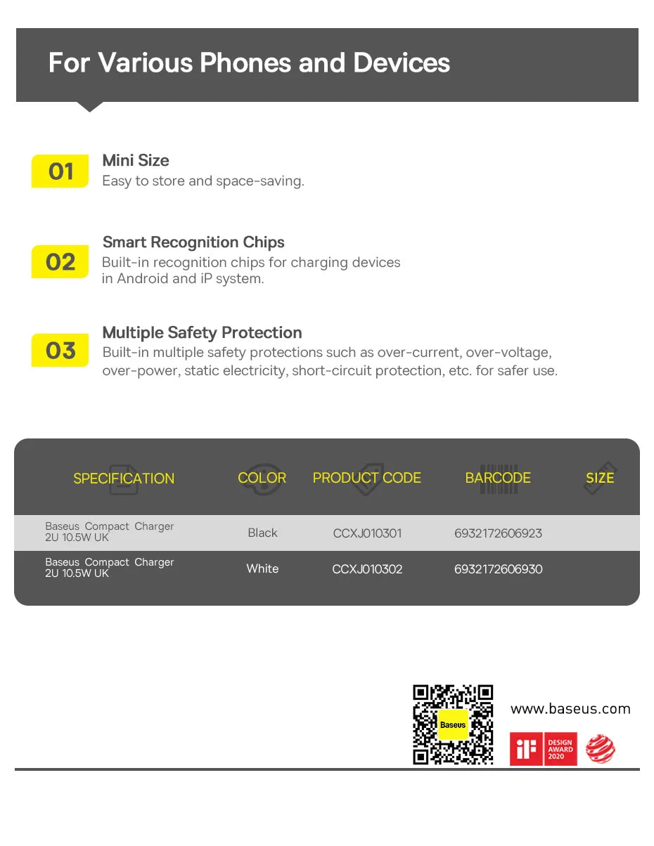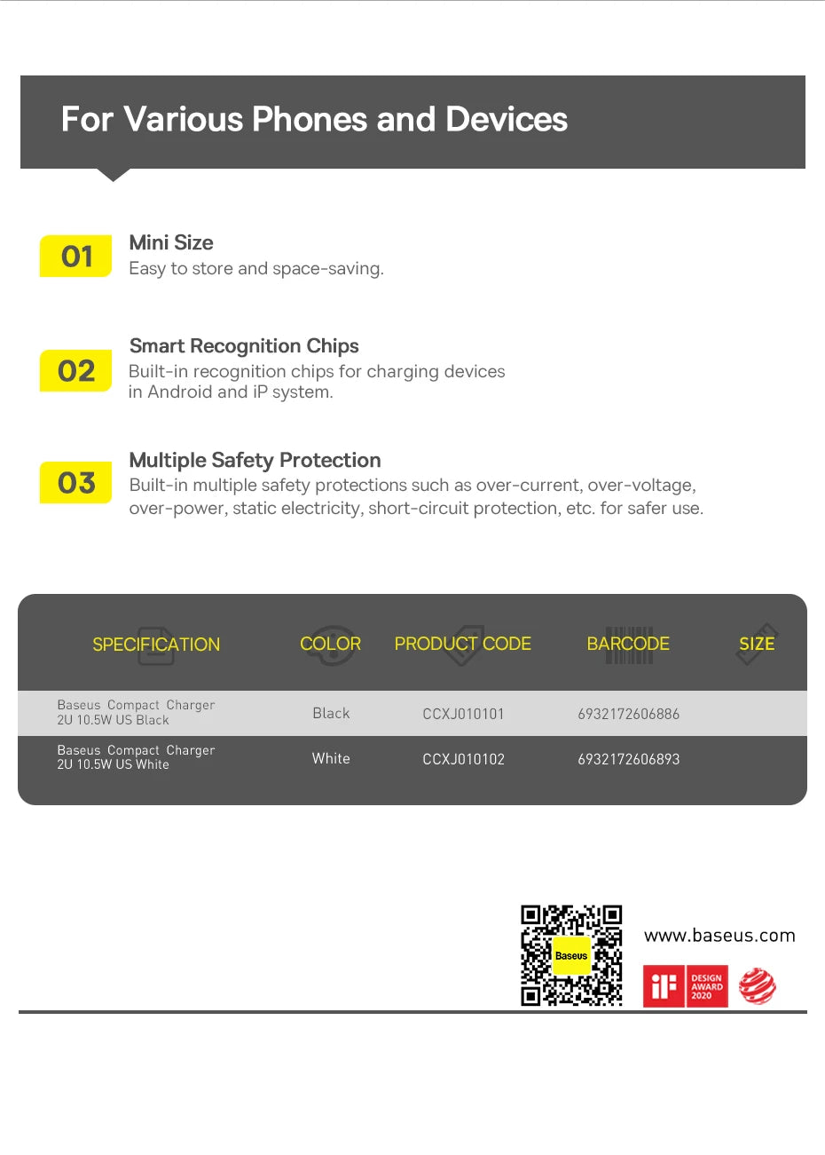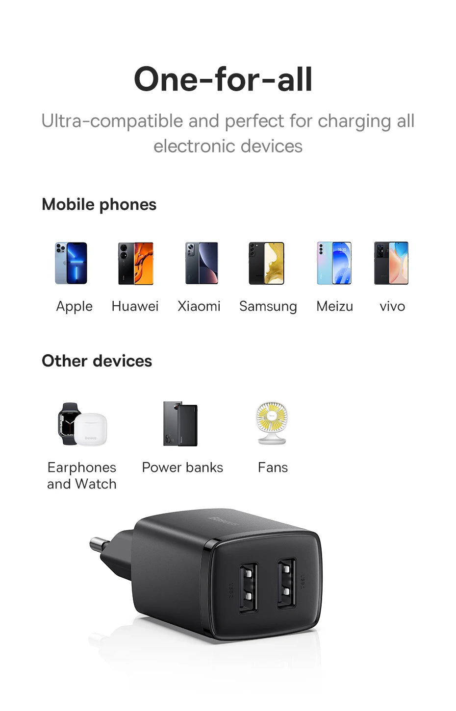 Baseus 10.5W Carregador de Viagem USB Mini Adaptador de Parede Portátil Carregador de Porta Dupla de Carregamento de Telefone Para iPhone Huawei Xiaomi