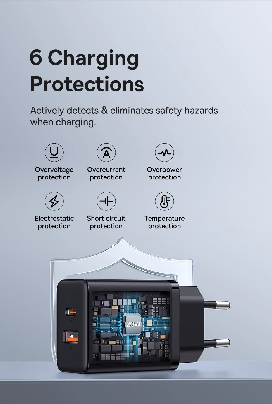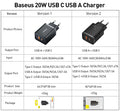 Baseus 20w carregador usb porta de carregamento dupla suporte tipo c pd carregador de telefone de carregamento rápido para iphone 15 14 13 12 pro max 11 8 plus