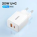 20W de potência, carregador rápido compacto mini mas rápido U+C 20W UE