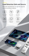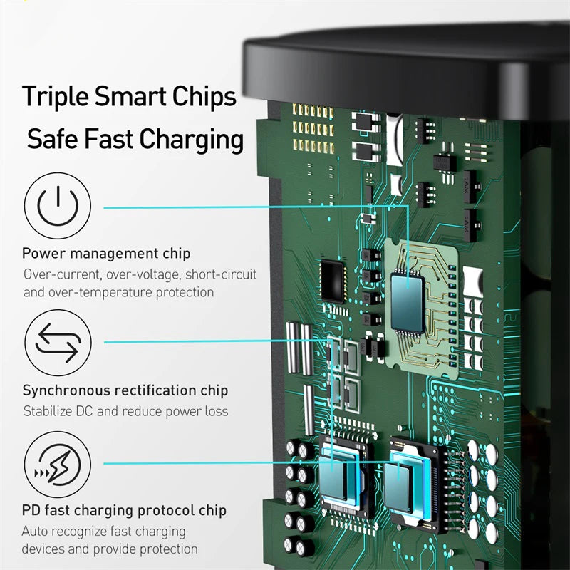 Suporta PD 3.0, QC 3.0, Apple2.4, BC 1.2 e outros protocolos de carregamento rápido.