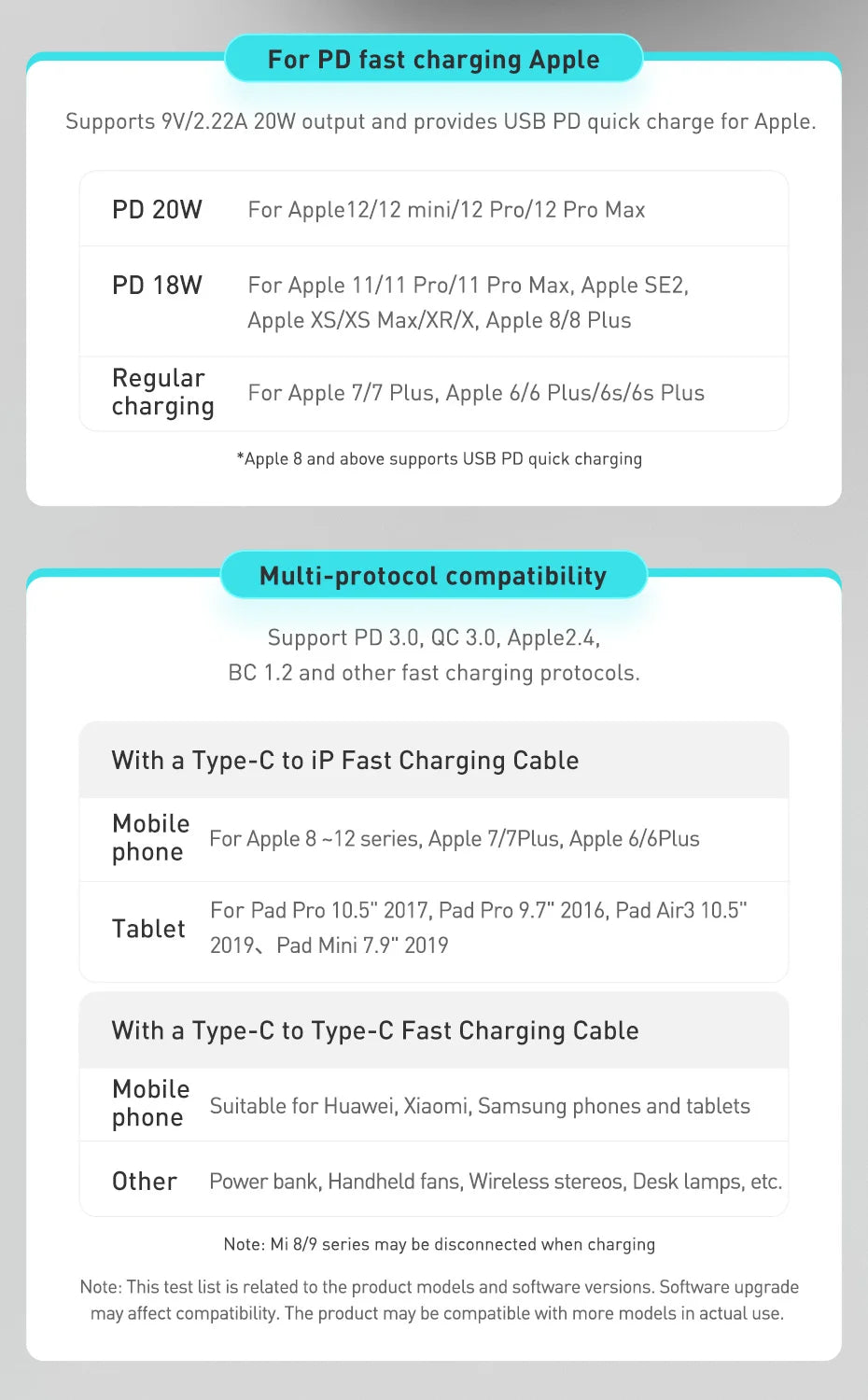 Compatibility: Support PD 3.0 QC3.0 and other quick charge protocols