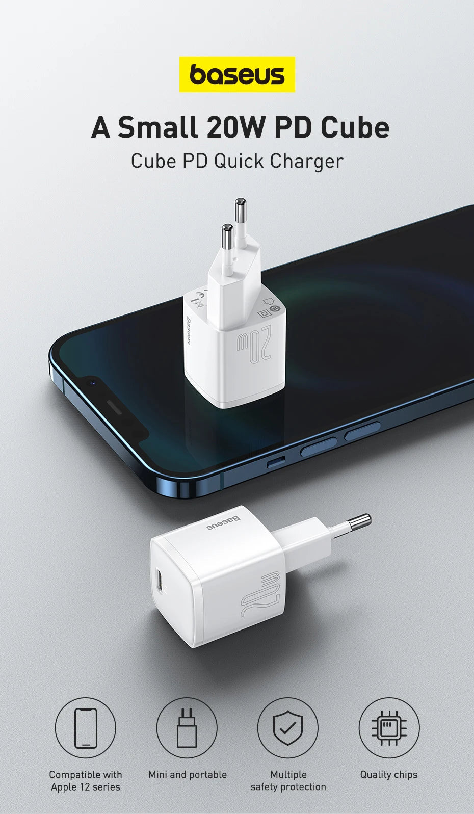 Baseus 20w tipo c carregador portátil usb c suporte pd qc carregamento rápido para telefone iphone 17 16 15 14 13 12 pro max laptops