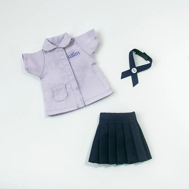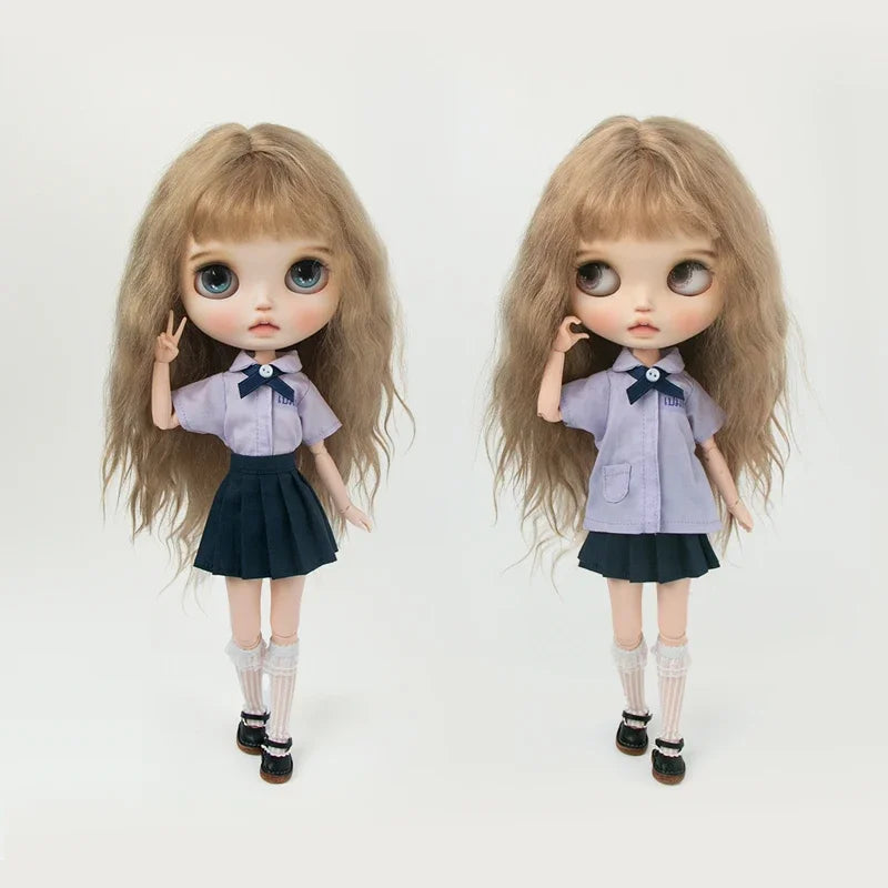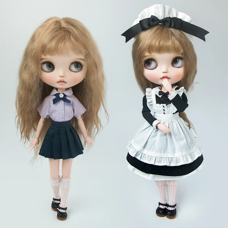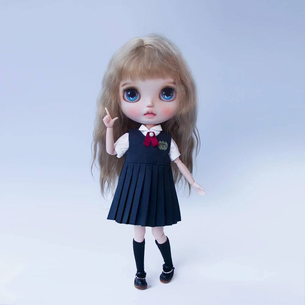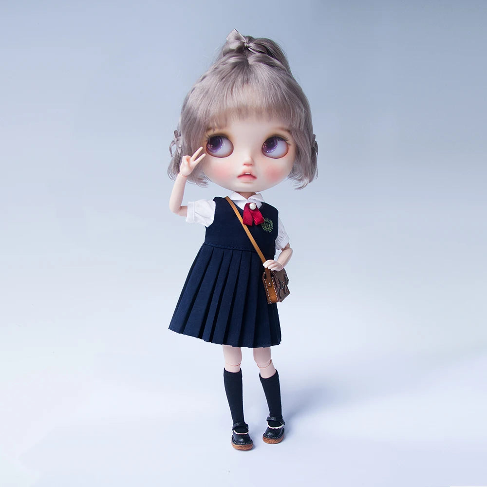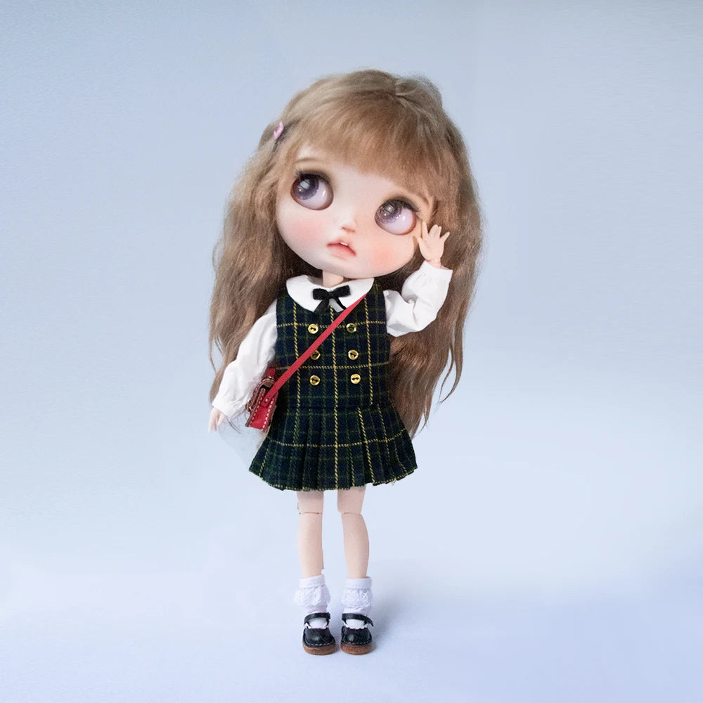 Blyth academia conjunto de uniforme blyth roupas vestido camisa xadrez saia plissada para ymy licca azones ob22 24 27 acessórios boneca