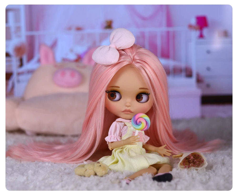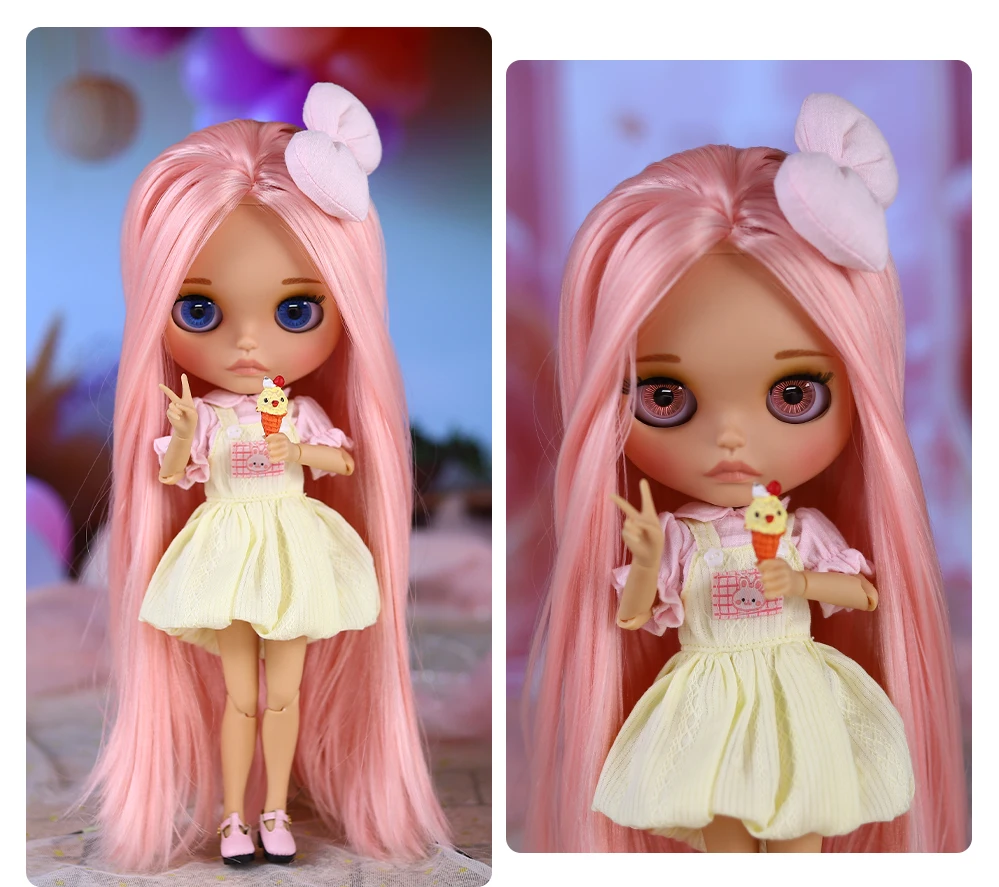Boneca ICY DBS Blyth BJD Corpo Articulado Pele Marrom Rosto Fosco Boneca Arco Bonito 1/6 30cm Presente para Menina Anime SD
