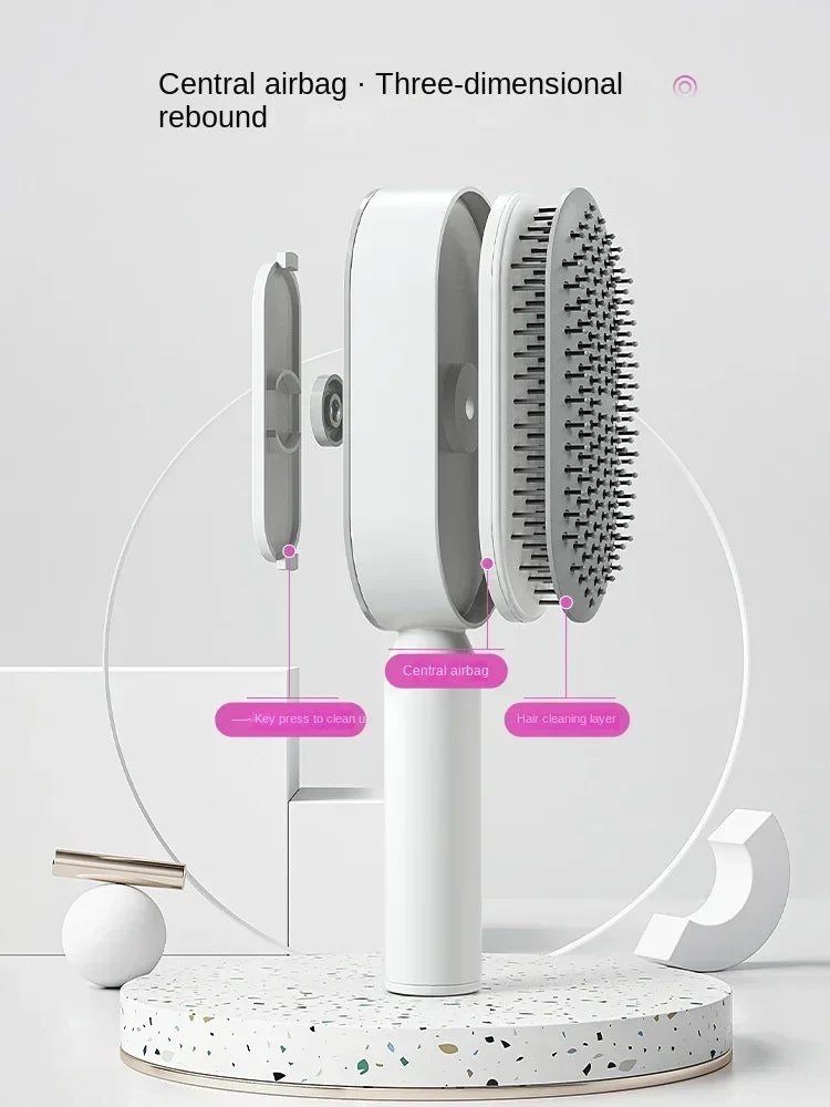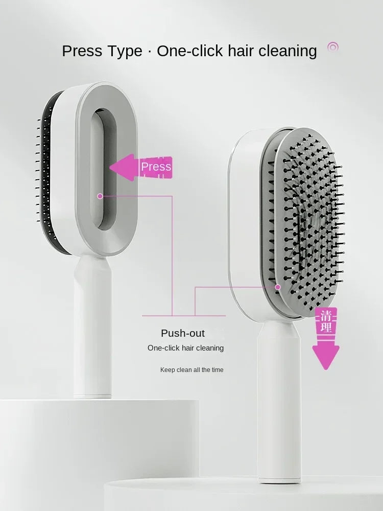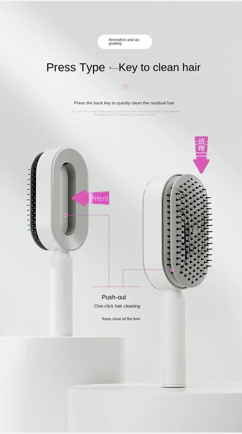 Escova de cabelo auto-limpante para mulheres, perda de cabelo de uma tecla, massagem Airbag, pente do couro cabeludo, escova antiestática, transporte da gota