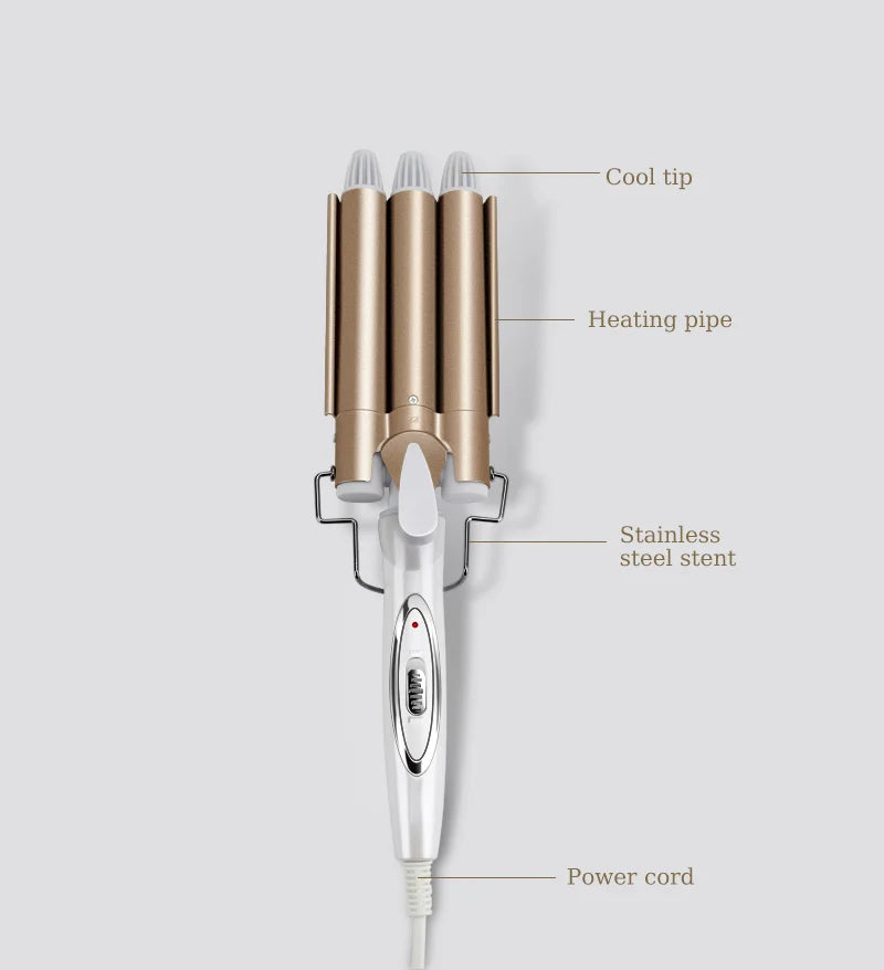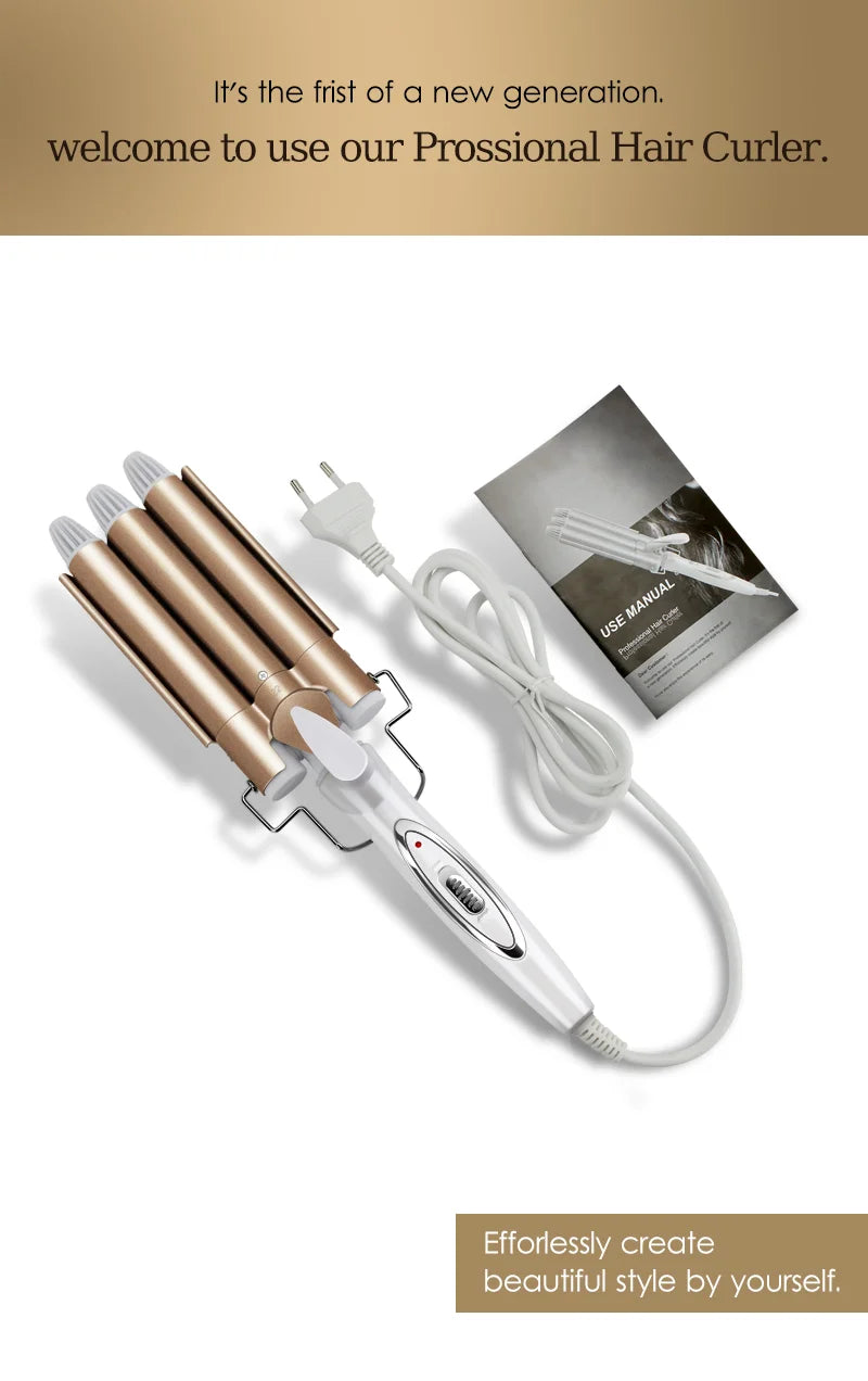 Ferramentas de cabelo profissionais ferro de ondulação cerâmica triplo barril modelador de cabelo ondulador ferramentas estilo rolos de cabelo ondulação elétrica