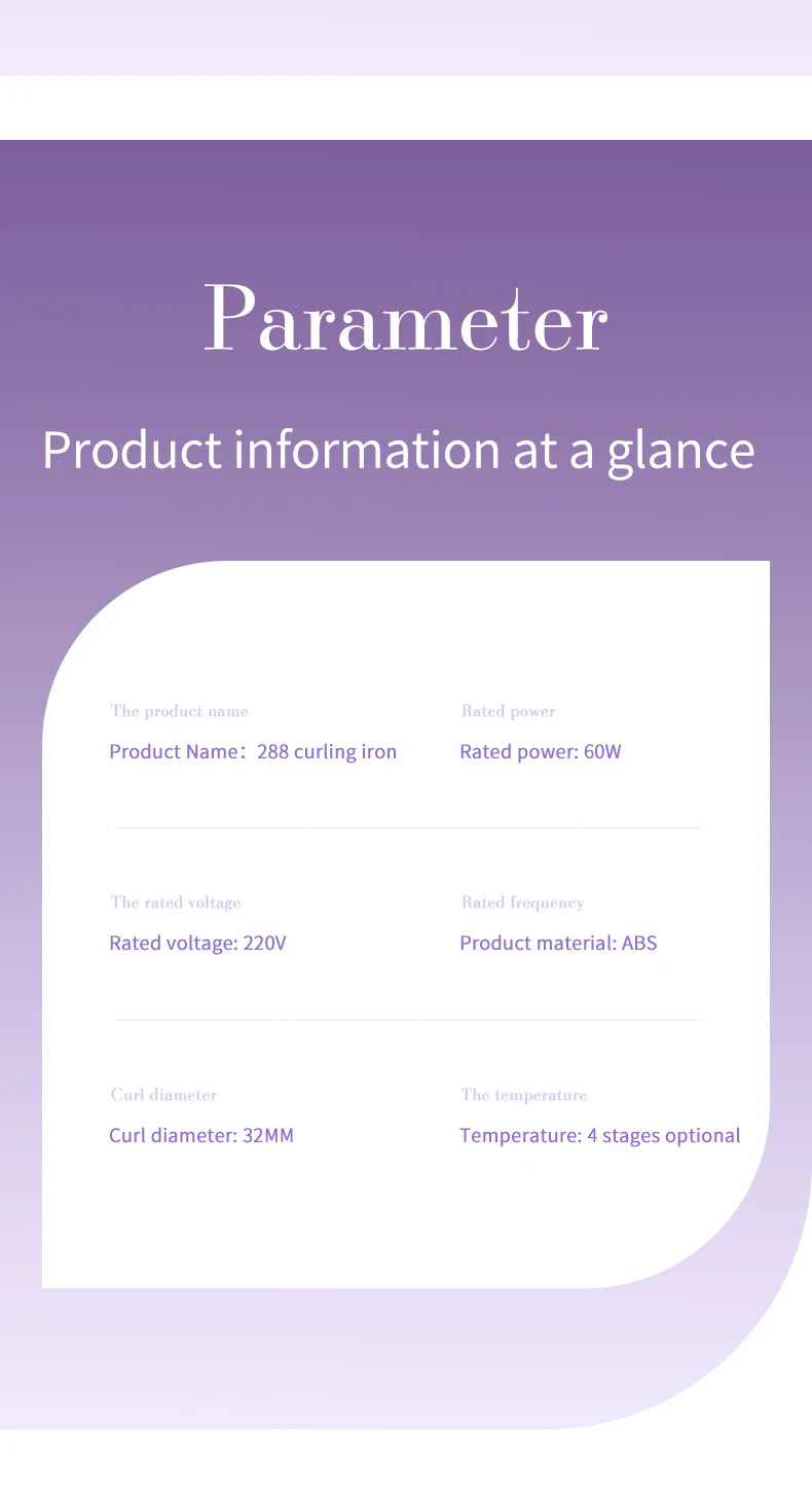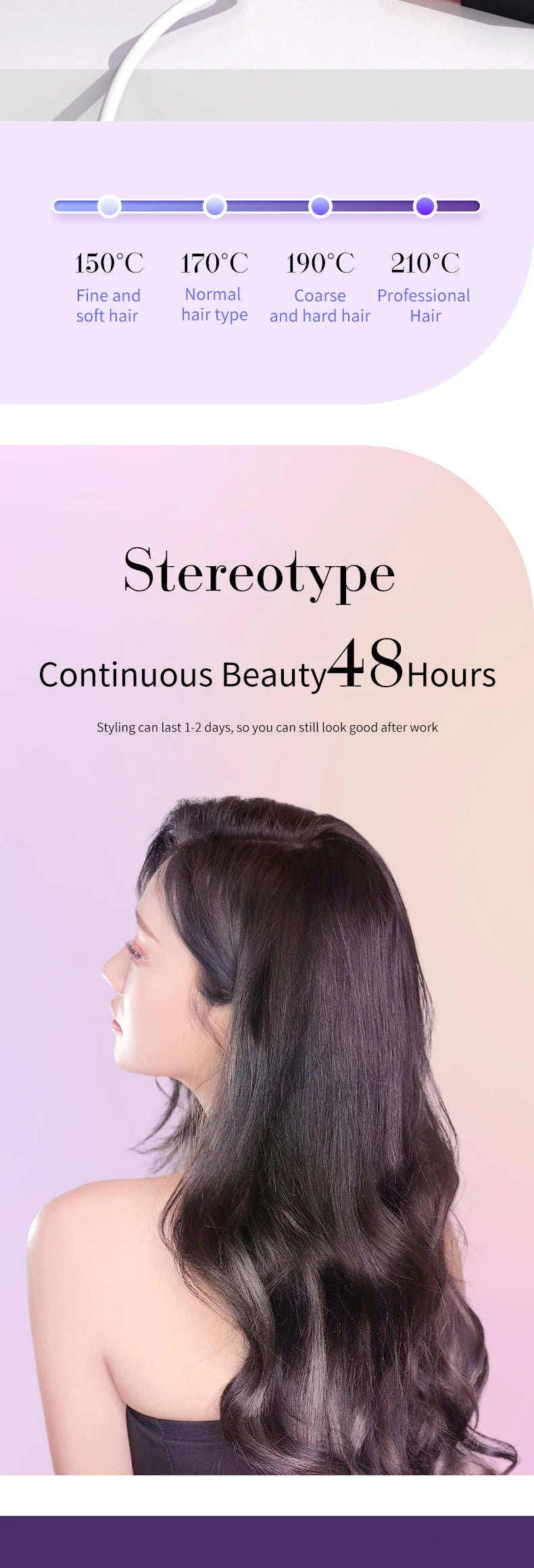 • Temperatura ajustável: O modelador de cabelo elétrico apresenta uma faixa de temperatura ajustável de 140-210°C/284℉-410℉, permitindo que você personalize o nível de calor de acordo com suas necessidades de estilo.