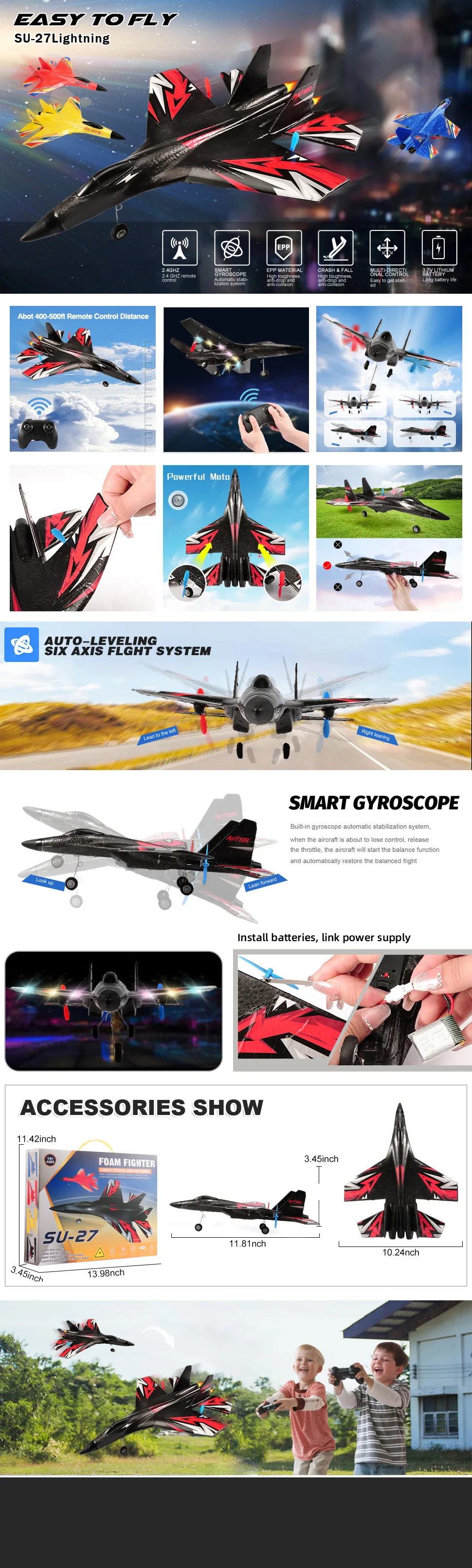 SU27 RC Avião 2.4G 2CH Controle Remoto Planador Voador Com Luzes LED EPP Espuma Avião Brinquedos Para Crianças Presentes
