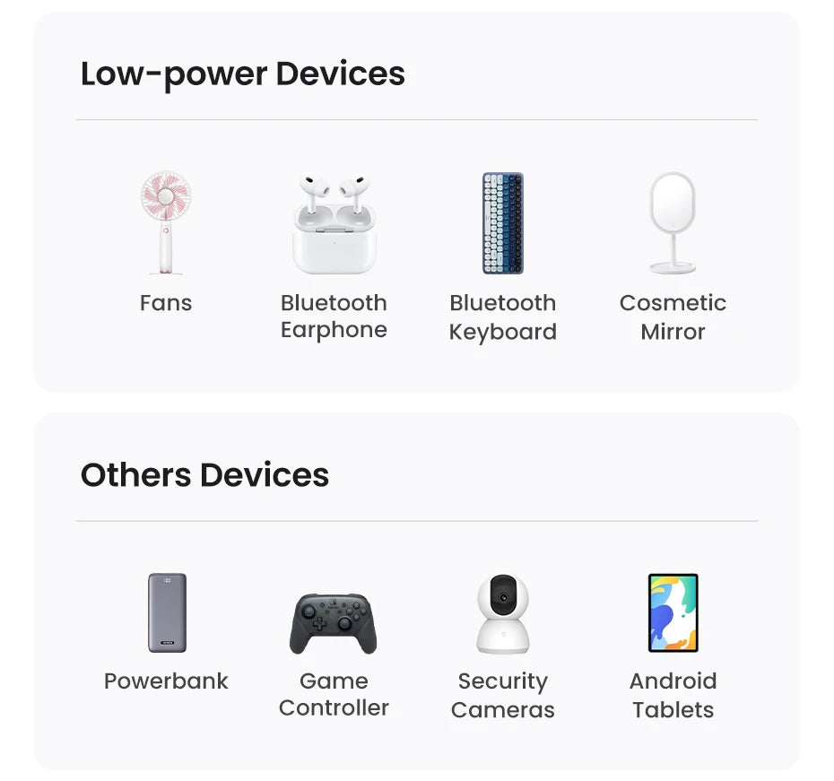 Suportam o protocolo de carregamento rápido QC3.0 / 2.0 Huawei FCP / AFC / BC1.2.