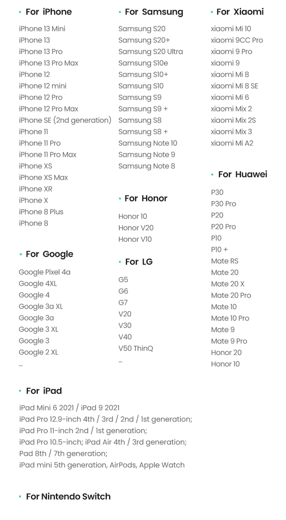 For Sony XZ1 / XZ2 / XZ Premium, Google Pixel 3X1 / 3a / 2XL / XL, Nintendo Switch, etc.