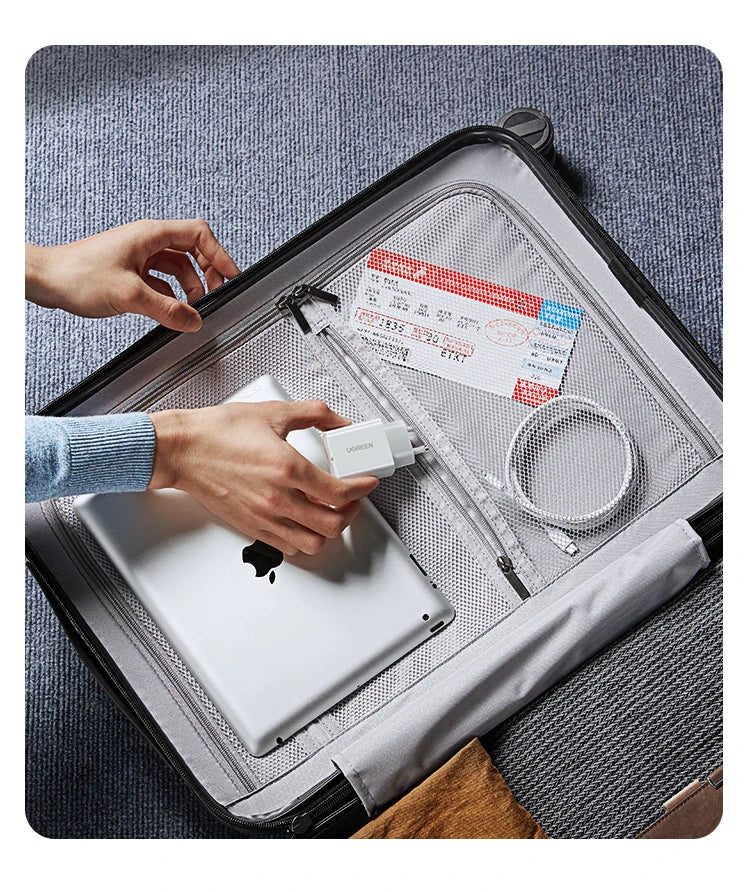A lightweight and compact design, It won't jam the other ports on the wall outlet, you'll have access to fast charging wherever you go.