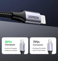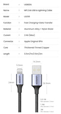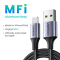 Ugreen mfi cabo usb para iphone 14 13 12 pro max 2.4a carregamento rápido relâmpago cabo para ipad mini telefone cabo de dados