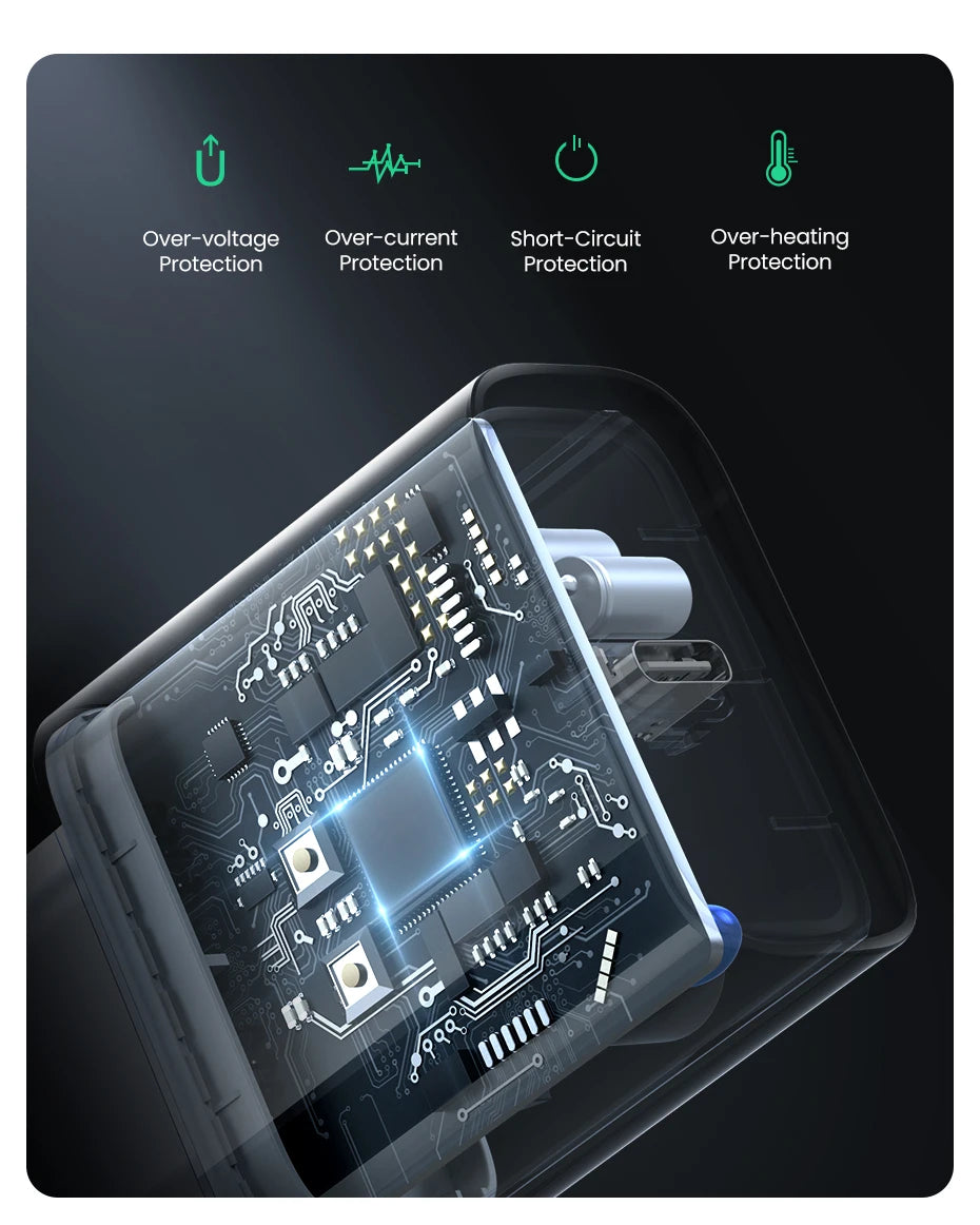 Com o chip inteligente interno, o carregador de parede PD corresponde à corrente conforme seu dispositivo precisa automaticamente.A proteção contra sobrecorrente, sobretensão e curto-circuito protege efetivamente seus dispositivos contra danos e garante um carregamento mais seguro durante a noite.
